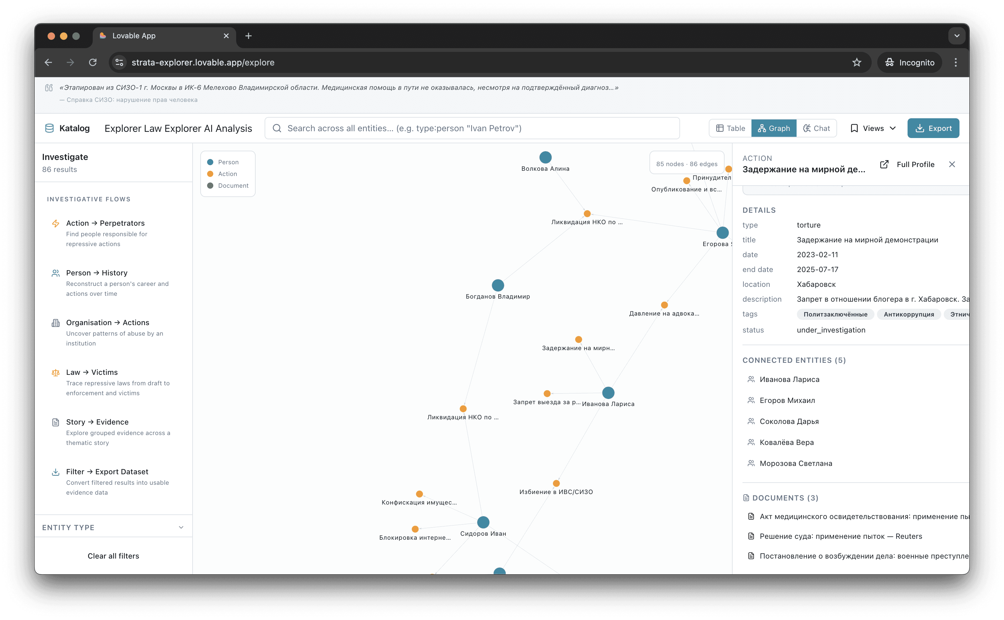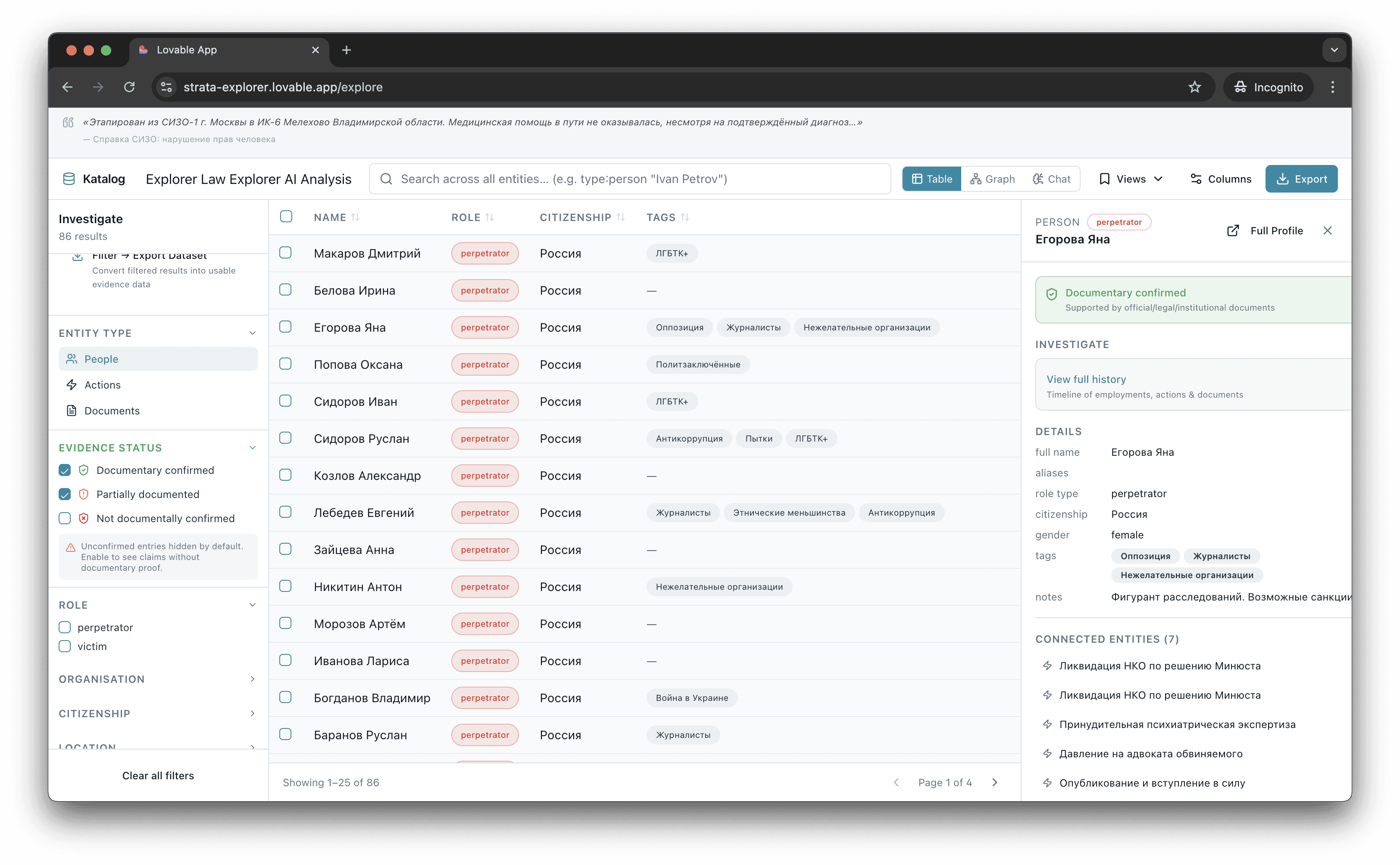 После смены политического режима в России данные Каталога смогут быть использованы для юридической оценки и осуществления правосудия переходного периода.