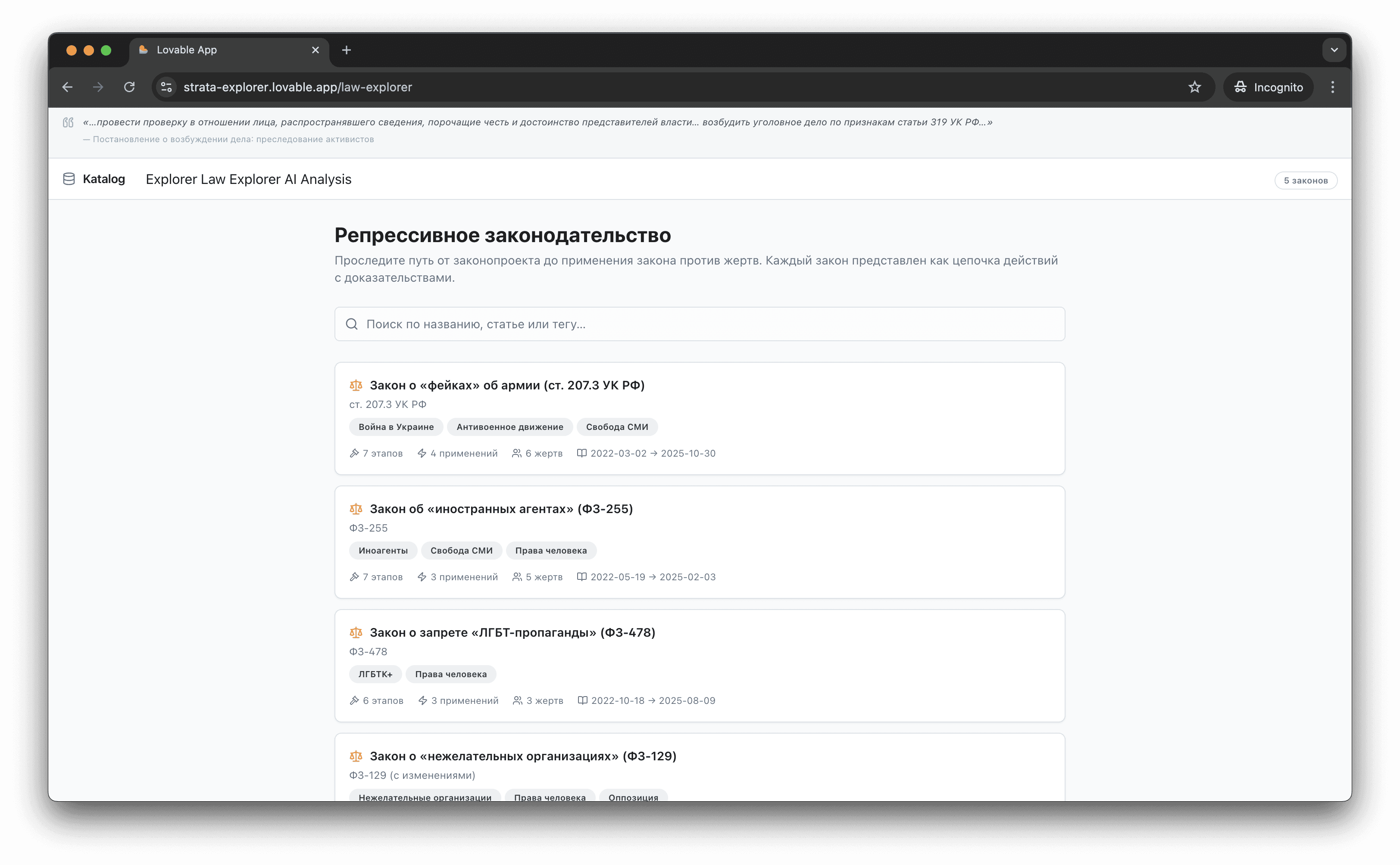 В основе Каталога — официальные юридические документы, служащие верифицируемой доказательной базой